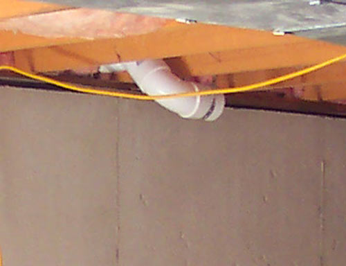 been threaded from a router upstairs, through the attic, down the PVC pipe